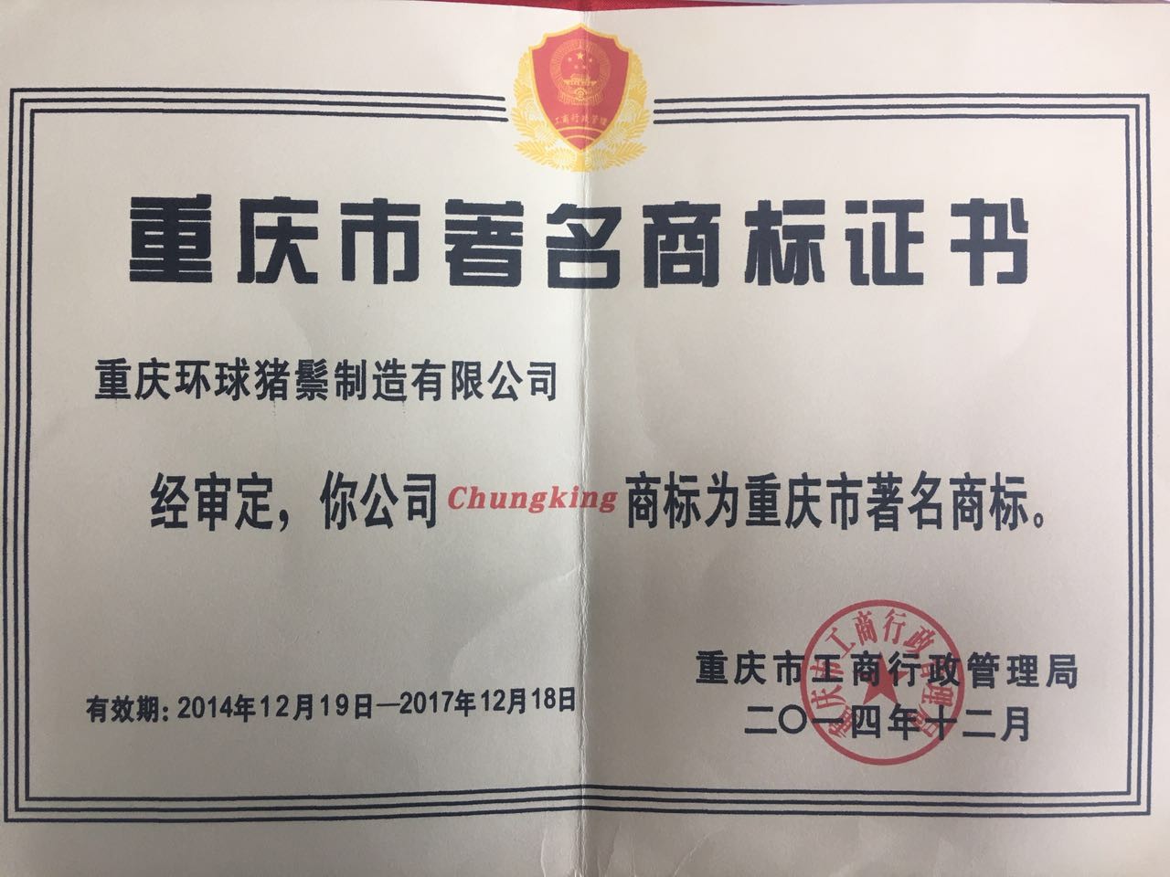 2. 重庆出入境检验检疫局颁发的中国质量诚信企业